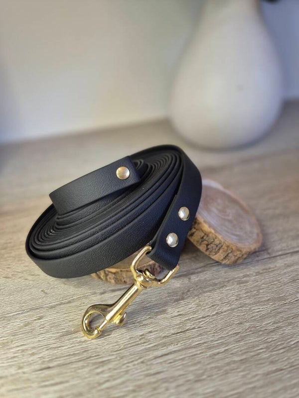 Ce type de sangle possède les mêmes qualités techniques que le Biothane® (matériau reconnu mondialement) : résistante à la traction, aux coupures, à l’abrasion, imperméable, inodore, facile à nettoyer, et respectueuse de la peau de vos compagnons. La sangle que nous utilisons est légèrement plus rigide que le Biothane®, ce qui peut offrir une meilleure prise en main, notamment lors des séances de travail ou d’éducation.
