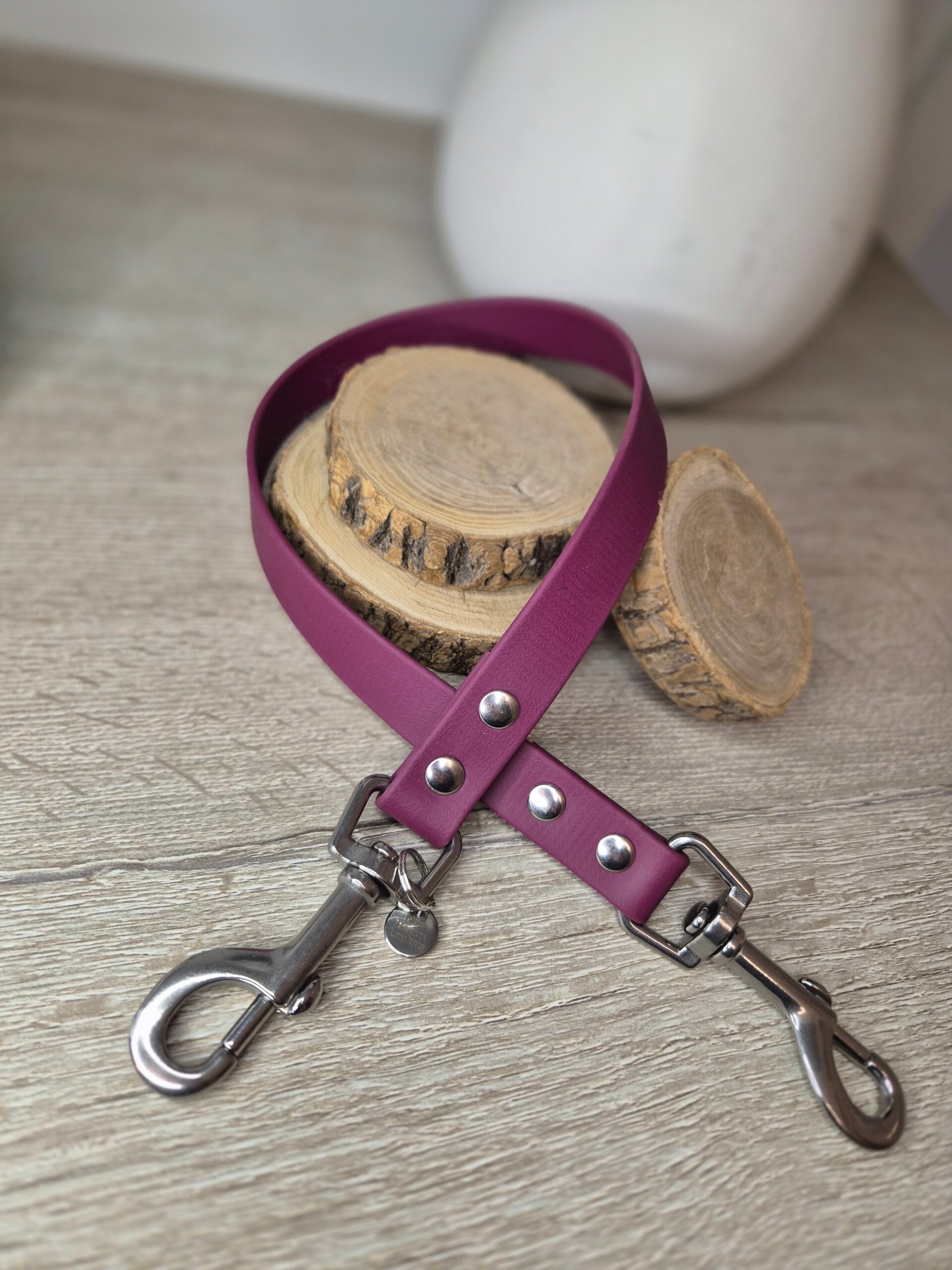 Biothane® de 25mm avec l'accroche ceinture de sécurité ou 19mm avec l'accroche mousqueton :